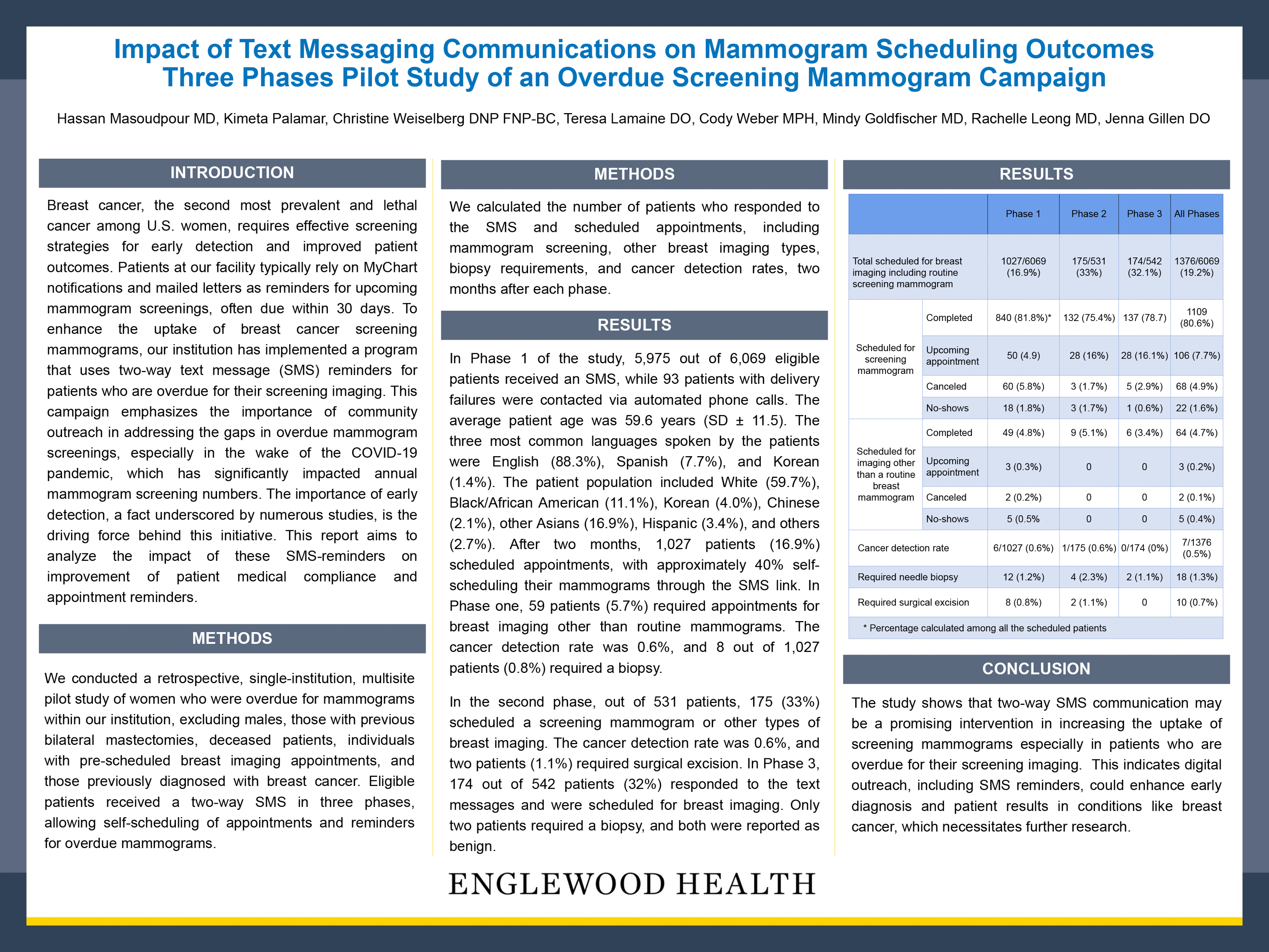 Hassan Masoudpour, MD, Kimeta Palamar, Christine Weiselberg, DNP, FNP-BC, Teresa Lamaine, DO, Cody Weber, MPH, Mindy Goldfischer, MD, Rachelle Leong, MD, Jenna Gillen, DO